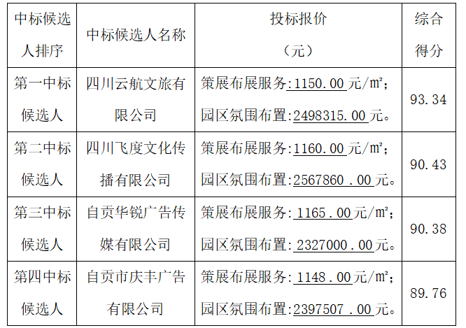 六、评标委员会确定的中标候选人名单: